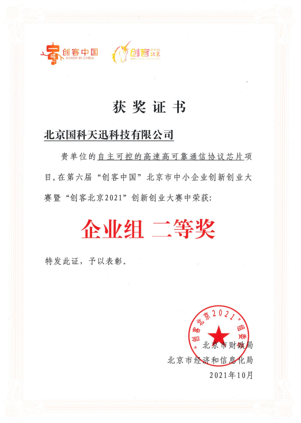 大赛自6月启动以来,受到广大中小企业和创客团队高度关注,吸引了全市近5千个项目报名。国科乐鱼官方网站-乐鱼(中国)参赛的“自主可控的高速高可靠通信协议芯片”项目,经初赛、复赛两个月激烈角逐,在众多项目中表现抢眼,成功入围新一代信息技术领域决赛,经路演获企业组百强,后与百家企业共同比拼及专家组评审后最终获此殊荣。